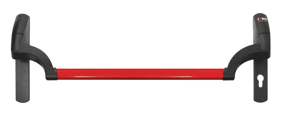 Barra di azionamento palmo per porte tagliafuoco, per anta principale e secondaria, reversibile, abbinabile a serrature antipanico e controserrature da infilare con quadro maniglia da 9 mm. Interasse mm 72,