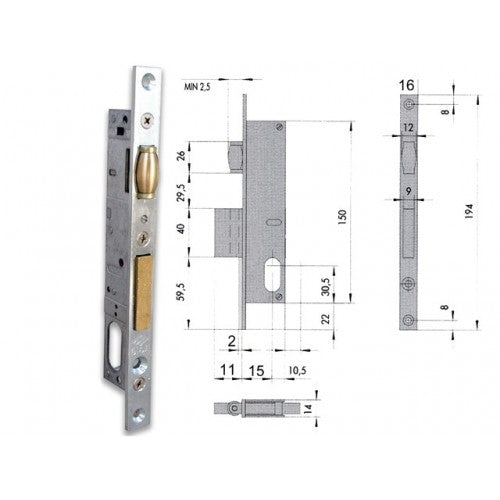 Serratura montante verticale meccanica da infilare (interna al telaio)