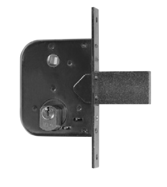 Serratura per cancello montante verticale meccanica con cilindro tondo sfaccettato da infilare (interna al telaio)